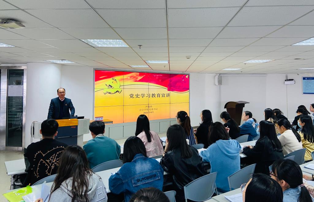 宣讲会上,学院党委书记按照宣讲提纲围绕“深入学习领会习近平总书记关于党的历史的重要论述;认真研读党史基本著作;深刻把握开展党史学习教育的重点;学懂弄通做实习近平新时代中国特色社会主义思想”等四个方面进行了党史学习教育专题宣讲。