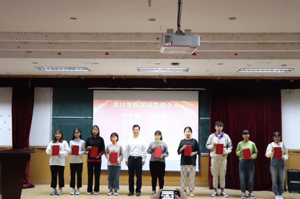 军训表彰大会中,党总支书记李鲁闽宣读了《太阳集团网tyc9728关于表彰 2019 级军训先进班集体、先进个人、优秀宿舍、内务标兵、优秀助理辅导员的决定》,副书记张海燕宣读“太阳集团网tyc9728军训叠被子大赛”及“我与我的山商梦”摄影比赛获奖名单。获奖者依次上台领奖。