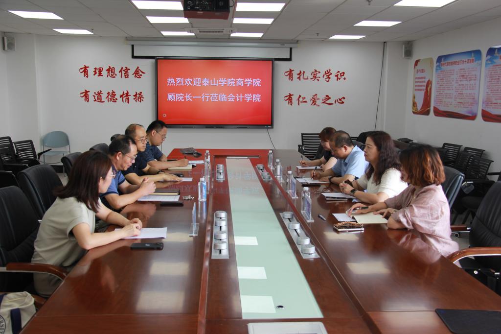 8月18日上午,泰山学院商学院院长顾立汉率队一行四人莅临我院,围绕审计专硕学位点申报与建设展开专题调研交流。我院院长桂良军、院长助理兼会计专硕教育中心主任董江春、审计系主任陈智出席座谈会,会议由桂良军院长主持。