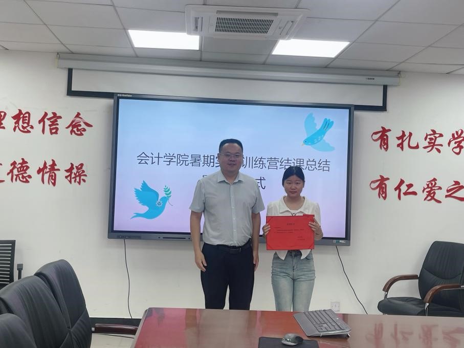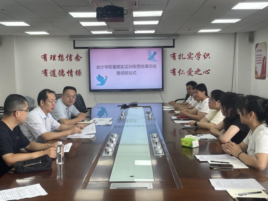 9月12日上午,太阳集团网tyc97282025年暑期实证训练营结课总结暨颁奖仪式在学院会议室举行。学院党委副书记、院长桂良军教授,院长助理、会计专硕教育中心主任董江春副教授,训练营发起人及组织者孙维章副教授,训练营主讲人端荣雪同学以及2025级全体会计学硕新生和部分参训会计专硕新生参加活动。